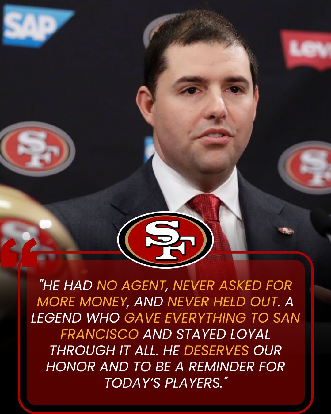 “He had no agent, never asked for more money, and never held out. A legend who gave everything to San Francisco and stayed loyal through it all. He deserves our honor and to be a reminder for today’s players.” — Jed York